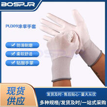 BOSPUR PU涂掌劳保手套 尼龙浸胶耐磨防滑工作防护手套电子厂装配防护 PU涂掌白色手套PU309-M(12双/包)