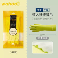 wahoo哇护Flocom肤乐植绒家用手套洗碗洗菜厨房卫生间清洁手套 WF44芽黄 L